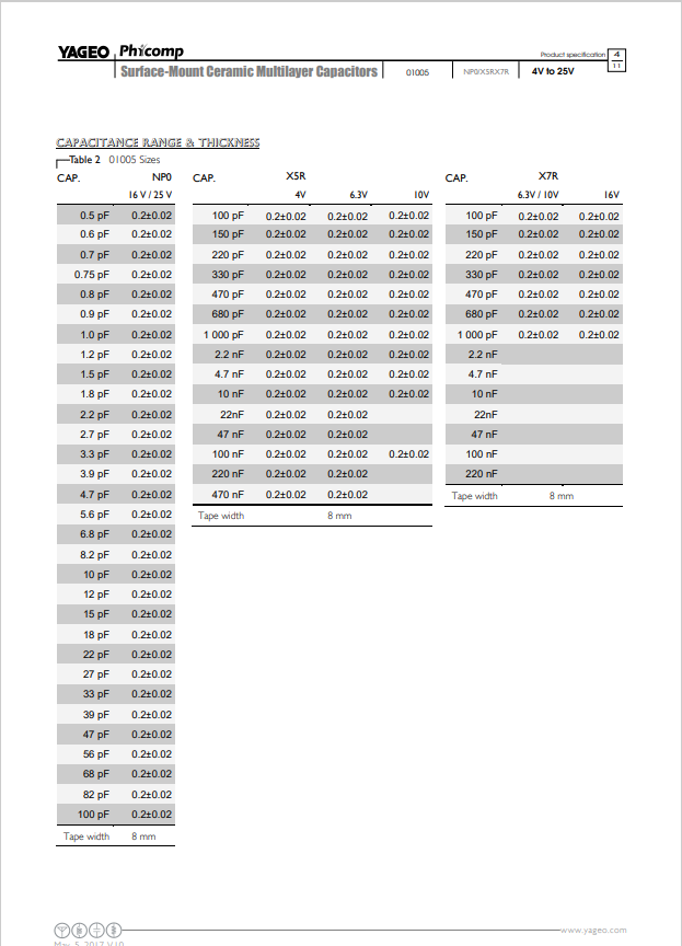 系列名稱(RC/RT/RJ/RV等)后面的4位數表示尺寸,如0100,0201,0402,0603,0805,1206,1210,1218,2010,2512等等。