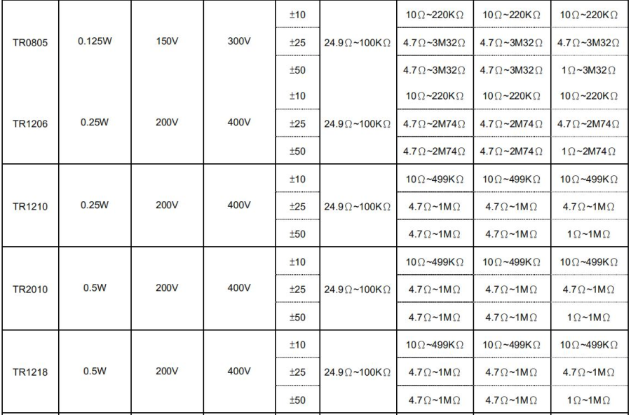 天二貼片高壓電阻規格書參考圖詳解如下