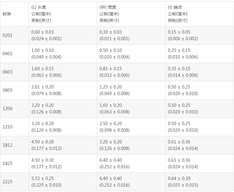 尺寸:例如0402表示長度為0.04英寸、寬度為0.02英寸(或1005表示1.0mm x 0.5mm)。