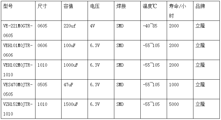 lelon(立?。┵N片鋁電解電容部分產品型號選型如下表